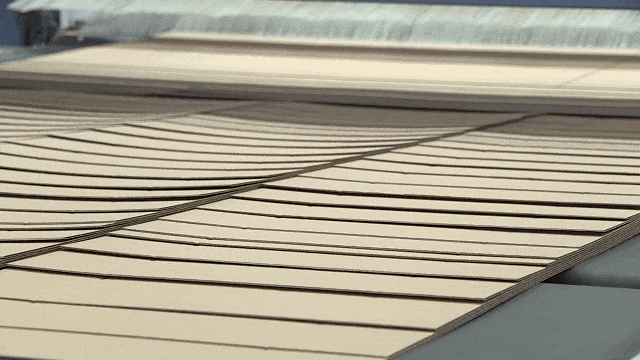 The seventh problem is usually being occurred in producing high bursting strength paper.That is ,when we are producing high bursting strength paper, it can be noticed that the paper edge is easily to decoating.Imagine this is a cardboard, and this is the flute direction, this is the flute. We can see that this edge is easy to decoating.In particular when producing high gram board, why it is happened?Because this edge is very easy to get overheated when passing drying unit. When we heat it in advance, the glue on this edge will be in gelatinization earlier.If gelatinization happens earlier, the glue will become solid before the papers get bonding, resulting in degluing.Therefore, board in high bursting strength needs to be adjusted during the production. The temperature should be adjusted when the bonding point of single wall is passing through the drying unit. And different glue formula should be used in this regard.How to understand using different glue formula? This is a single wall board.The first layer is the inner liner to be bonded with the flute. The second is the liner to be bonded with the flute. The heating absorption in these two papers is different.It can be seen that the bonding between inner liner and the flute is on the corrugating roll, which the heating transfer is very fast.While the heating on the liner and flute is in the drying unit, which is slow relatively.Therefore, this comparison is not obvious on low gram paper, but is quite clearly on high gram paper. It is necessary to differentiate the gelatinization temperature in liner and inner liner.In this regard, when the paper gets different heat, the paper can be firmly bonded.